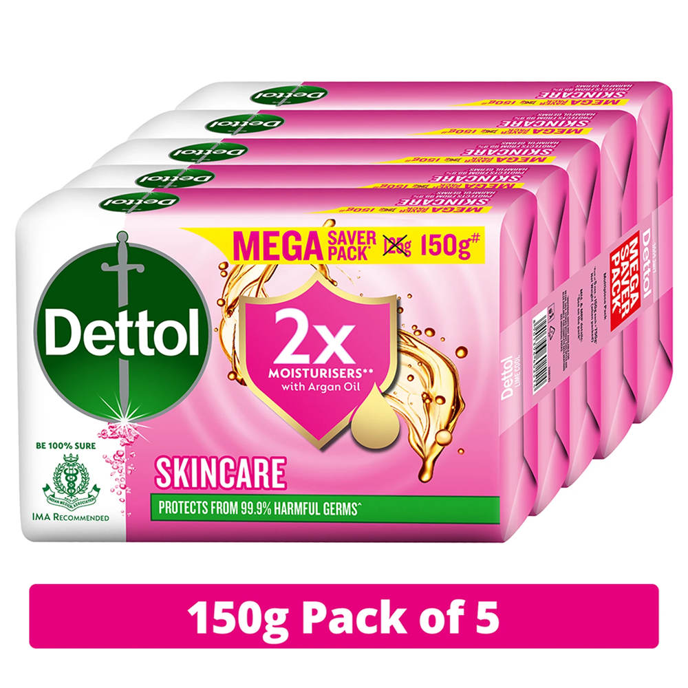 Dettol Skincare Moisturizing Bathing Soap Softer Skin (5 x 150 g)